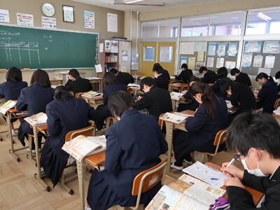 さて、3月8日(月)は「県立高校一般選抜」、1・2年生も「実力テスト」が行われます。週末は不要不急の外出を自粛し、学習中心の生活を送りましょう。