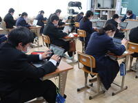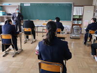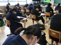 【実力テストの様子】1時間目は1・2年生とも「国語」の問題です。