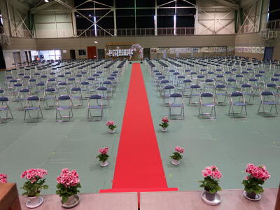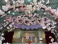 暖かな日差しが校舎内に差し込んでいます。毎日、卒業に向けて小学校時代の恩師や異動された先生方から多数の「祝詞」が届けられ、心温まるメッセージが書かれています。現在、在校生と教職員が一丸となって準備を進めています。