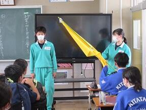 今日の5校時終了後、体育祭結団式が行われました。各クラスに実行委員長と副委員長が訪問し、団旗を渡した後に、団長から意気込みが述べられました。盛り上がった体育祭になることを期待しています。