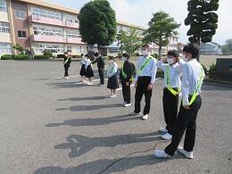 今日の朝、生徒会主催のあいさつ運動がありました。生徒会役員と3年1組の生徒が、本校校門と東小学校の昇降口であいさつをしました。あいさつがこだまする学校にしたいと考えています。