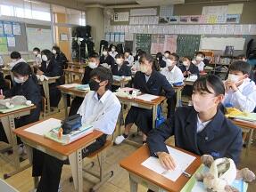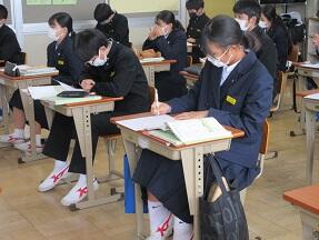 今日、5、6時間目に3年生とその保護者を対象に県立高等学校説明会を実施しました。3年生は11月の三者面談で私立の受験校が決定し、この後1月の三者面談で県立の志望校を決定していきます。高校入試はもうそこまで来ています。3年生、頑張ってください。校長あいさつは、以下のことを話しました。