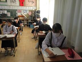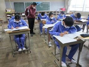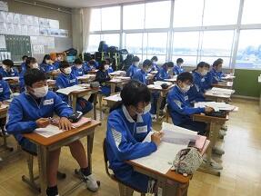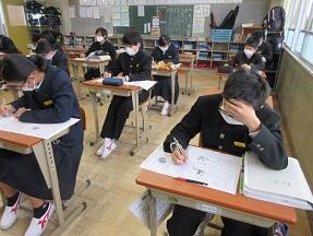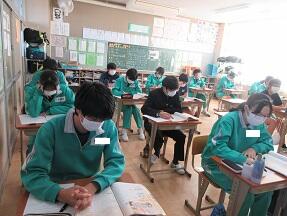今日の6校時終了後に、地震から火災の避難訓練を実施しました。各学年の避難にかかった時間は、1年生3分11秒、2年生2分56秒、3年生2分41秒でした。出張のため不在にしていましたが、教頭先生からの報告ではとてもよくできていたとのことです。「自分の命は自分で守る。」これが生徒たちに浸透させていきたいと考えています。