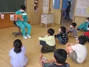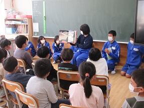 今日の昼休みに、図書委員が東小学校へ出向いて読み聞かせを実施しました。どの学年もとてもよよい雰囲気で読み聞かせが進められていました。中学生にとってとてもよい経験になっていると感じました。