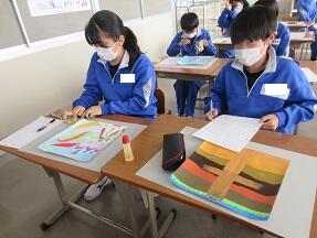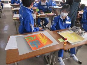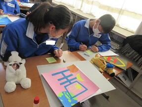 完成した「絵文字」の作品を、鑑賞し合っていました。