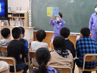 【東小での読み聞かせ】図書委員会では昼休みを活用し、東小学校で本の読み聞かせを行いました。事前に町の図書館の方から指導していただいた成果が表れ、小学生が喜んでいました。