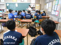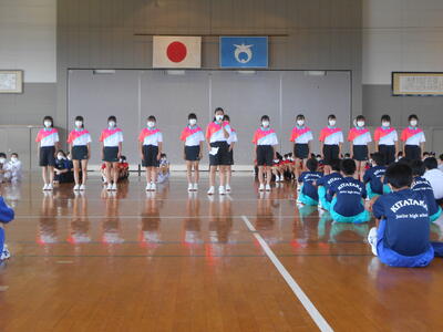 【部活動後継式】各部とも大会が中止になり、残念がっていましたが、本校で一緒に取り組んだ仲間への感謝と後輩へのアドバイスが述べられました。とても感動した式となりました。