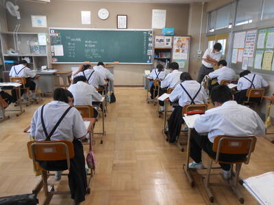 【テストの様子】1時間目の様子です。2年生は「英語」3年生は「理科」でした。