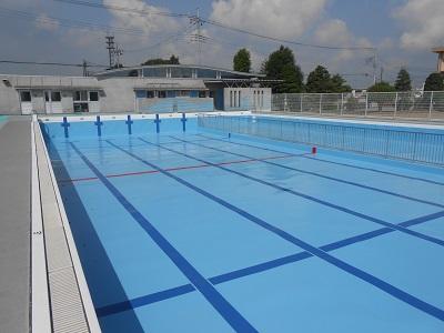【朝の様子】 プールもきれいになり、間もなく水を入れます。昨年度、新しくしたプールはとてもきれいです。