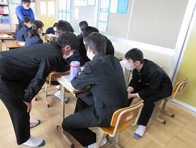 手紙の書き方で、今まで書いた手紙をふりかえり、どんなことに気を付けて書いたかを思い出し、近くの生徒と話し合っていました。