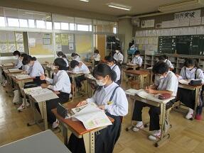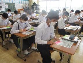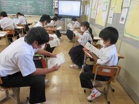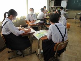 Unit5 Part1の本文を、隣の席の人と距離を気にしながら読み合っていました。みんな真剣に取り組んでいました。