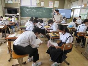 律令国家での暮らしについて、学習プリントを使ってまとめていました。とても明るい雰囲気で授業が進められていました。