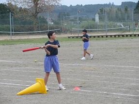 ソフトボールの授業で、バッティングの練習をしていました。みんなとても楽しそうに活動していました。
