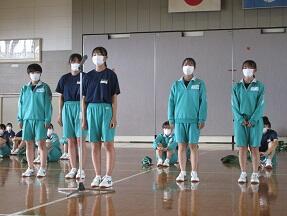 今日の放課後、総合体育大会に向けて部活動壮行会が行われました。激励の言葉の後に、各部長からの決意表明があり、男子ソフトテニス部とソフトボール部部長による選手宣誓がありました。