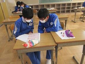 鳥獣人物戯画の絵にふさわしい英語の台詞を2人組で考えていました。なかなかおもしろそうな授業でした。