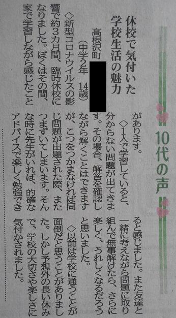 【下野新聞掲載】6月7日「10代の声」に本校生徒の投稿記事が掲載されていました。臨時休業中に思った内容です。とても素晴らしいです。