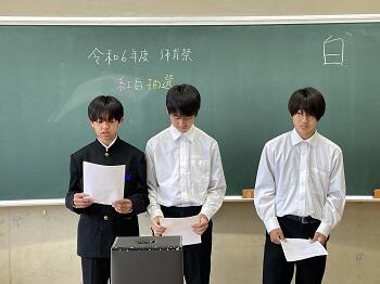 本日の読書の時間に、今年度の体育祭における「組み分け抽選会」が行われました。その模様はオンラインで各クラスに中継され、時折、どよめきが聞こえてきていました。