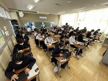 お留守番の3年生は、授業の合間に修学旅行のまとめにも黙々と取り組んでいました。