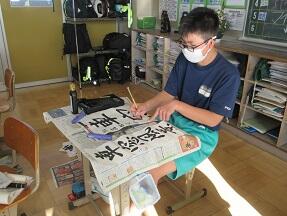 毛筆で書き初めの「車窓風景」という文字の練習をしていました。集中して取り組んでいるので、物音一つ聞こえてきませんでした。