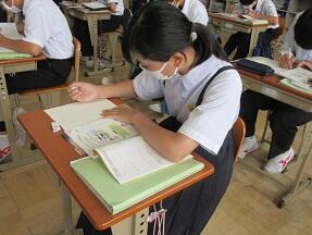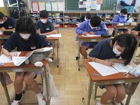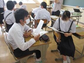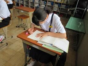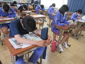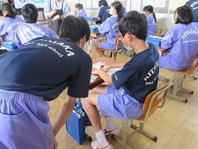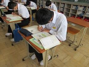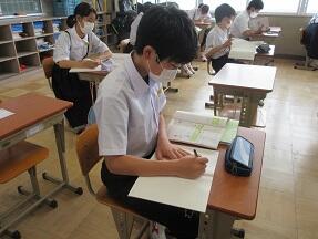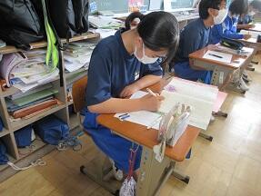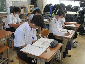 本文の西村さんの手記の理解をやっていました。さすがに3年生の英語は難しいと感じました。