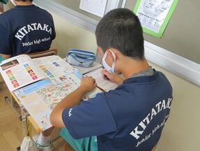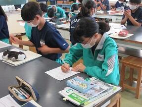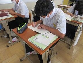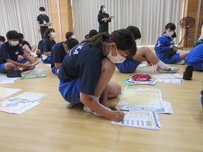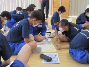 マイタイムラインとは、台風の接近によって河川の水位が上昇するときに、自分自身がとる標準的な防災行動を時系列に整理し、とりまとめる行動計画表です。「自分の命は、自分で守る。」生徒たちは真剣に取り組んでいました。