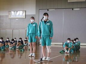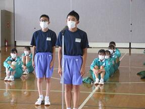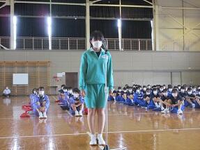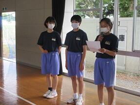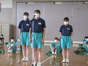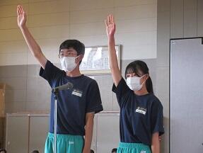 今日の放課後、総合体育大会に向けて部活動壮行会が行われました。激励の言葉の後に、各部長からの決意表明があり、男子ソフトテニス部とソフトボール部部長による選手宣誓がありました。