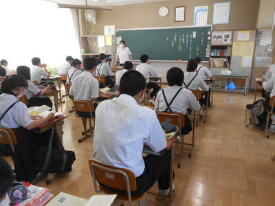 学校再開して4日目、順調に授業が行われていますが、この暑さのせいもあり生徒の中には少し疲れがあらわれているようです。今日から1年生は部活動見学があり、下校時刻が17:00になりますので保護者の皆様には御了知願います。2・3年生の部活動終了時刻は17:45です。