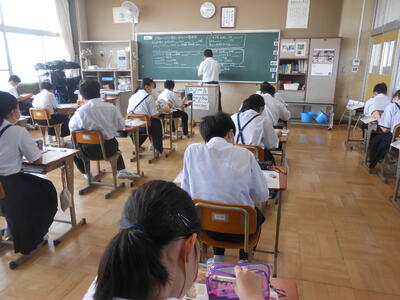 3年1組「確認テスト」3年生は2年生までに学んだ学習内容の確認テストを5教科行いました。いよいよ進路に向けての第一歩です。