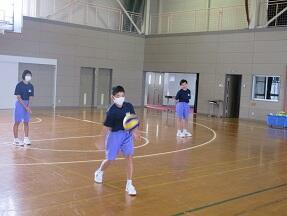 体育館で、バレーボールに取り組んでいました。工夫されたルールでとても楽しそうにゲームを行っていました。