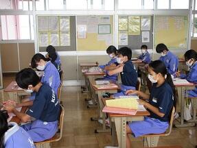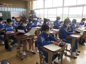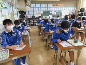 今日の1校時に、全クラスの授業を見てきました。どの授業も、コロナ感染症予防対策をしっかり実施しての授業でした。