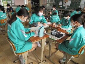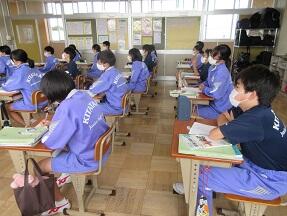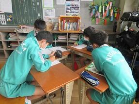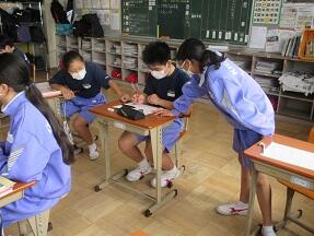 中国、四国地方で調べたことをグループで発表していました。グループの形や時間を気にしながら感染症対策しながらの実施でした。