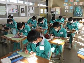 先日実施された、私立高等学校の入試問題にチャレンジしていました。来年の今頃を想像し、自分のこととして受け止めて取り組むことを期待しています。3年生に進級するまでのこれからの3ヶ月間は、高校入試0学期という気持ちで頑張ってください。