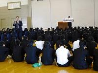 〇全校朝会・・・・・・月、1回の「朝会」がありました。4月は、たくさんの表彰があり、校長の話はなかったので、生徒たちに話ができるのは、4月8日「始業式」以来となりました。