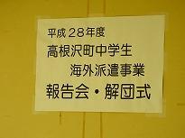 〇町中学生海外派遣事業 報告会・解団式・・・・・・本日、10時00分から町改善センター2階研修室で町長様をはじめ町議会議長様、野中教育委員様の御臨席をいただきながら開催されました。