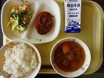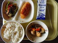 (今日の給食 リンゴソースのハンバーブ) (朝の空模様)