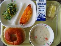 (今日の給食 米粉パン他) (午前中の薄暗い空のようす)
