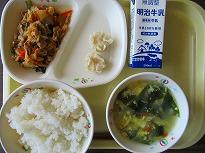 (今日の給食 韓国風メニュー)(青空に校旗が大きくなびいています)