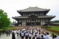 ●10時15分ごろ「東大寺」に到着・・・・・・奈良公園の鹿たちと集合写真を撮影。専門のガイドさんの説明を受けながら「大仏殿」内を見学しました。スケールの大きさに生徒たちは驚いたようです。