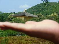 (今日は1組1班の活動を紹介)  (芸術写真? 金閣寺が手のひらに)