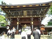 (旅館前で写真)       (どの神社の大鳥居かな?)
