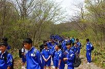 ●「入所式」を行いました。午前中は「ハイキング」でしたが、コースの途中で私との約束(那須山で雪崩事故に遭い7名の大田原高校生と1名の職員に対して)「黙祷(もくとう)」をしました。