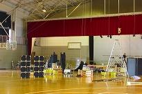 ●劇団は「らくりん座」です。団員は朝5時30分に来校し、会場準備をしていました。