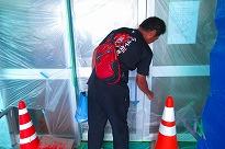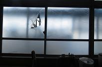(1階の北側窓ガラス 強化ガラスに取り付け作業)