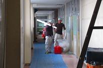 帰り道、16時00分に北中へ行くと「台風5号」で仕事を休むことなく、校内にはたくさんの職人さんたちが入って大規模改修工事を行っていました。