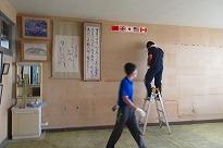 (校長室 ジュウタンが剥がされました) (荒井先生 荷物の片付け)