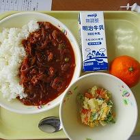 (今日の給食 ハッシュドビーフ他) (国旗掲揚 生徒会役員)
