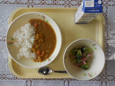 【給食メニュー】 チキンカレーとイタリアンサラダです。