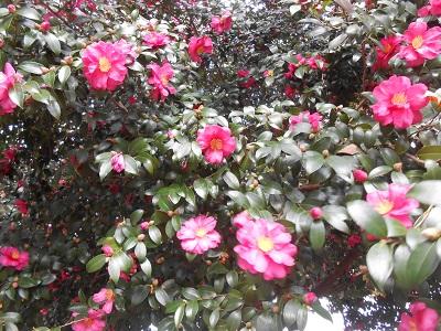 午後、校舎周辺を散歩していると、小学校の中庭に植えた椿に花が咲いていました。暖かい日が続いたので咲いたのでしょうか。また、花壇には東小の児童が植えた花(パンジー)が色とりどりに咲いています。中庭を見るのが楽しみです。