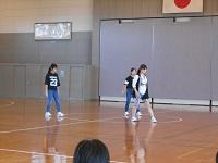※3年生女子が体育館で「バスケットボール」の試合中です。とても楽しそうです。