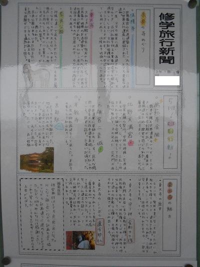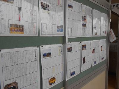 2年生の廊下には「宿泊学習新聞」が掲示されていました。3年生同様、きちんとまとめられていました。